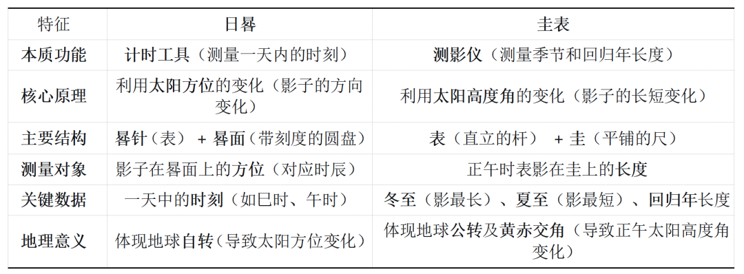 2.功能互补:圭表定“季”(年),日晷定“时”(日),共同构成了古人的时间坐标系统。